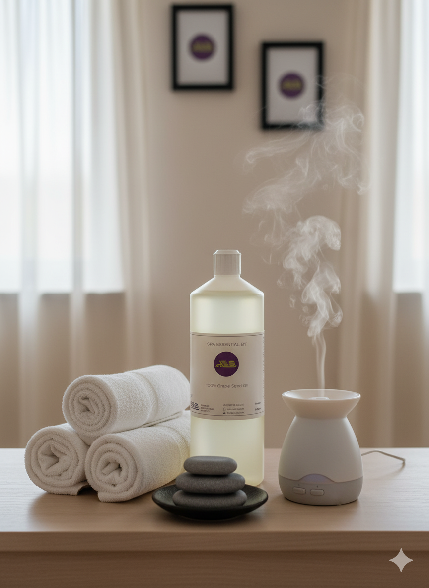100% pure Grapeseed Oil, hypoallergenic and suitable for sensitive skin - available in 1, 2.5, and 5 litres.